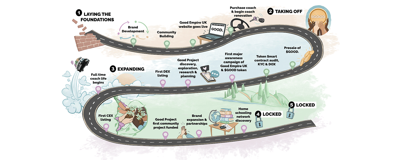 We are a lifestyle brand on a mission to inspire real-world change. Through $GOOD, the first-of-its-kind "van-life" token — we’re building Good Empire UK, a growing community rooted in alternative living, freedom and purpose. We’re launching Good Project under our “DO MORE GOOD” initiative, where every $GOOD transaction fuels real-world impact, documented openly across our social media channels. Our community can vote on which initiatives and good causes we support, helping people in need, building connection and bringing people together. We also have a dedicated rewards allocation for token holders, ensuring our community benefits as the project grows. At the heart of our brand is a vision to build a future where more people have the opportunity to thrive. What sets Good Empire UK apart is the limitless potential of the GOOD brand. Our roadmap is built to evolve with us — adapting and expanding into new ventures as we grow. The opportunities for the GOOD brand are endless.